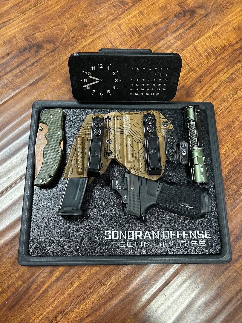 Organizing everyday carry items such as flashlights, knives, pistols (when not in active use), wallets, and watches