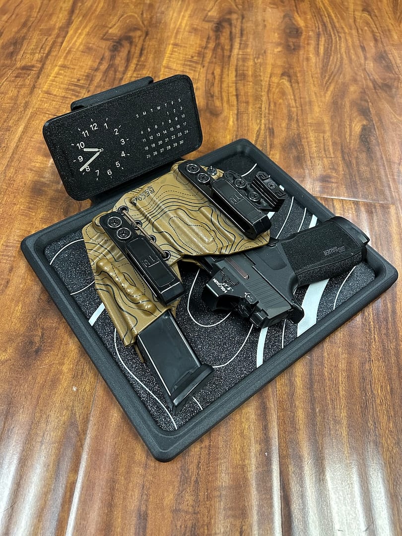 This tray is intended as an organizational and display surface — it is not a secure firearm storage device. Always handle firearms safely, store them unloaded, and use proper locking or secured storage when not in use.